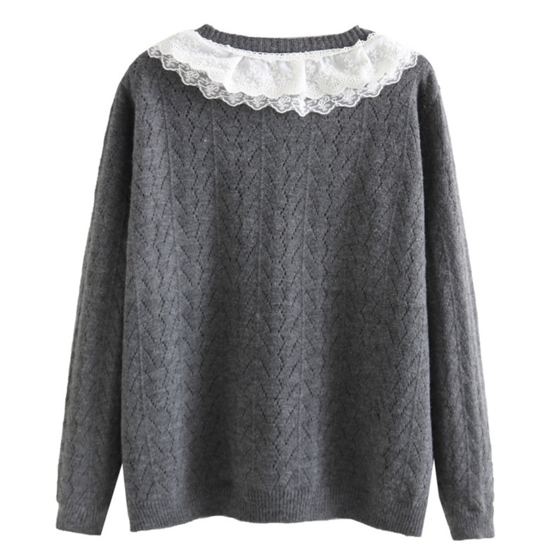 • Design: Textured knit with a lace collar and button closure